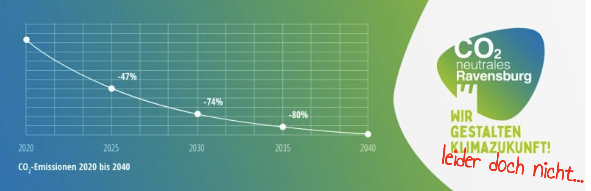 Doch leider ist seitdem fast nichts passiert. Ravensburg hat sich nicht als Klimastadt, sondern als Stadt der bloßen Verbal-Ökologie hervorgetan: Also viel Reden - wenig Tun. An der Spitze der Misere steht als Ober-Verbalökologe der Oberbürgermeister Daniel Rapp, doch auch große Teile des Gemeinderats blockieren lieber als zu ermöglichen.